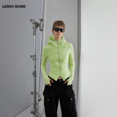 LEDIM WANG白标/可露丽风连帽薄款羽绒服女25冬新款鹅绒修身绿色