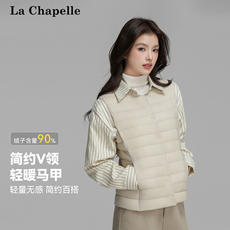 拉夏贝尔轻薄羽绒服女2025年冬季V领基础修身背心内胆鸭绒马夹