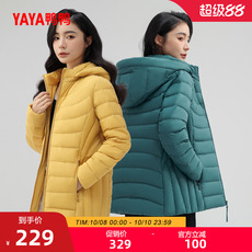 鸭鸭轻薄羽绒服女短款2025冬季反季连帽薄款时尚修身休闲鸭绒外套
