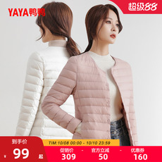 雅鹿轻薄款羽绒服女款2025秋冬新款短款圆领修身无领内胆保暖外套