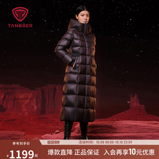 坦博尔冬季羽绒服女高充绒量中长款连帽加厚保暖修身面包外套