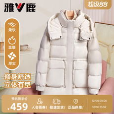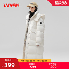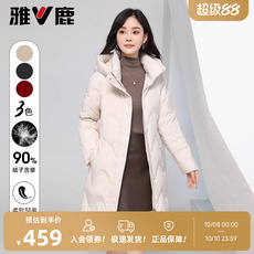 雅鹿中长款连帽羽绒服女冬季2025新款时尚直筒修身保暖鸭绒外套
