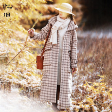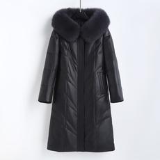 声雨竹冬装鹅绒连帽中长款修身羽绒服女外套 附腰带 貉子毛条