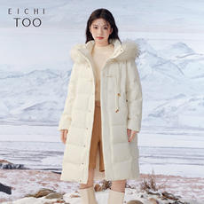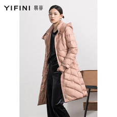 艾莱依冬季羽绒服女款长款新款连帽气质大衣修身加厚收腰休闲外套