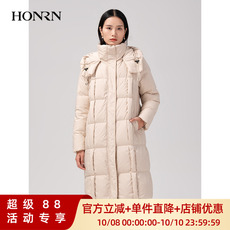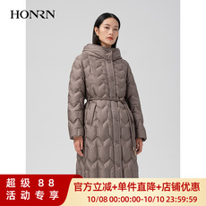 HONRN/红人长款修身收腰显瘦连帽鸭绒羽绒服外套女冬季HI59YR108