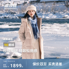 【爆款】波司登90鹅绒显瘦长款新款冬连帽羽绒服女修身保暖外套