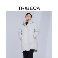 TRIBECA翠贝卡2024冬新款商场同款修身女士连帽中长款羽绒服外套