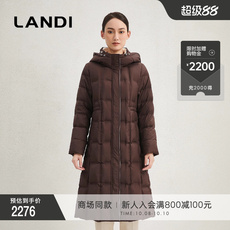 海兰丝冬季新款简约通勤轻奢收腰长款女羽绒服连帽修身外套
