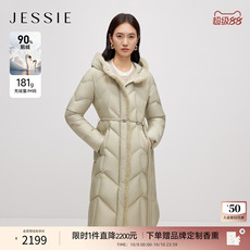 乔妮塔女装2025冬季轻型蓬松连帽90白鸭绒过膝修身长款羽绒服外套