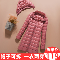 新轻薄羽绒服女中长款便携时尚韩版修身大码轻便连帽冬装外套