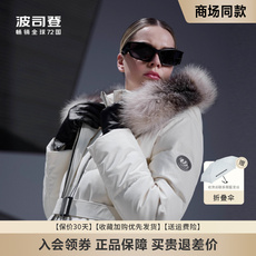 【鹅绒】波司登奥莱女长款连帽经典商务毛领腰带设计修身羽绒服