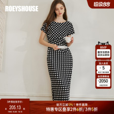 罗衣高级性感针织连衣裙女2025夏季新款复古波点修身中长裙10595