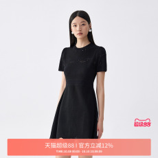 FIVE PLUS连衣裙女高腰修身针织裙子短袖镂空绣花2024新款女秋装