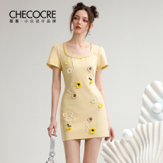 茬客减龄甜酷连衣裙25年夏季款立体钩花修身显瘦喇叭袖女款针织裙