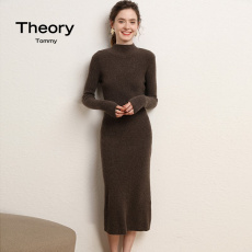 Theory Tommy半高领羊毛连衣裙女中长款长袖修身羊绒毛衣针织长裙