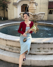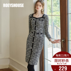 秘密盒子纤纤佳人 可可推四平编织细腻修身显瘦针织旗袍式连衣裙