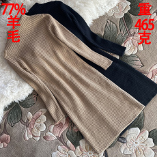 强推!羊毛连衣裙半高领中长款 T家羊毛竖坑条修身打底针织连衣裙