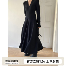 MUZI现货 vintage 木子同款自制复古气质修身显瘦黑色针织连衣裙