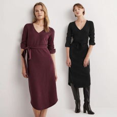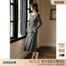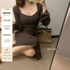 【清仓价】括号领针织连衣裙女秋冬内搭气质修身中长款毛衣裙