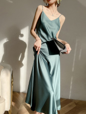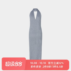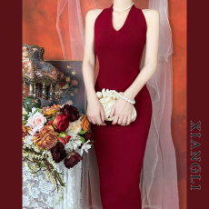 superr 挂脖系带V领露背多穿合身无袖长款针织连衣裙女修身