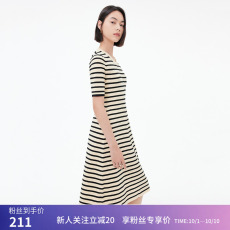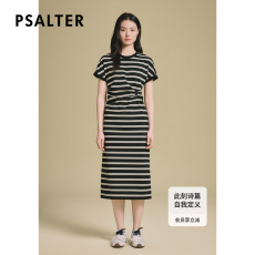 诗篇专选天丝莱赛尔黑白复古条纹高腰修身针织连衣裙2025夏季新款