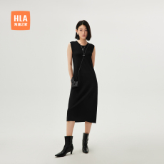Winema晓雪 桃心领超弹针织连衣裙女 定制花纹带小桃心修身显瘦