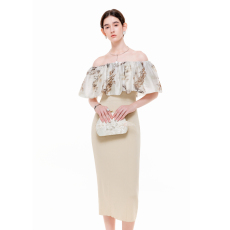 SNIDEL春夏款甜美吊带薄纱修身针织连衣裙两件套SWNO241007