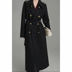 2025秋冬新款双面羊毛大衣女中长款西装领系带修身毛呢外套2501