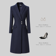 高端职业羊毛大衣女冬中长款气质修身收腰设计感售楼部物业工作服