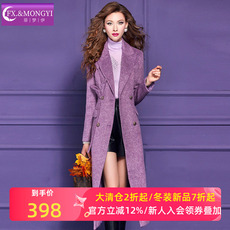 菲梦伊原创含羊毛紫色毛呢外套女冬季高端品质加厚修身中长款大衣