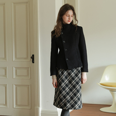 DPLAY含羊毛黑色单毛呢外套女法式好看冬季新款高级修身大衣女