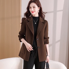 毛呢外套女短款西服领修身气质小个子羊毛西装新款双面呢羊毛大衣