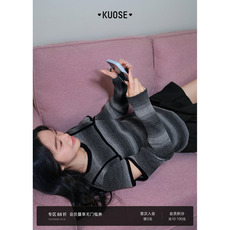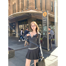北欧时刻设计感假两件短款针织开衫外套女春秋羊毛混纺深灰色毛衣