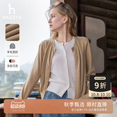 Basic House/百家好2025秋新款羊毛针织开衫女连帽假两件毛衣外套