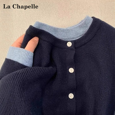 拉夏贝尔假两件针织毛衣外套女2025新款高级感开衫内搭打底衫上衣