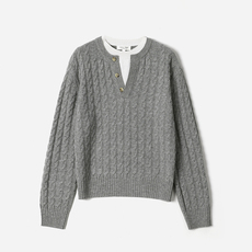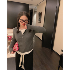 Ashy Snow miu系智感 假两件亨利领修身针织衫女收腰显瘦套头上衣