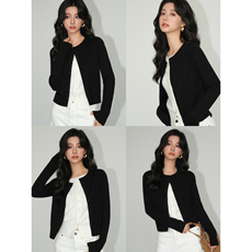 SREK秋款新款波点假两件针织开衫上衣女秋季高级感慵懒风毛衣外套