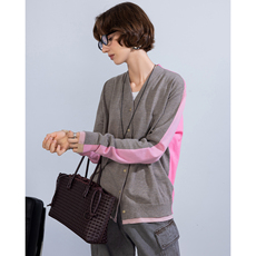 阔色粉色撞色假两件针织衫开衫外套25早秋穿搭新款女毛衣宽松上衣