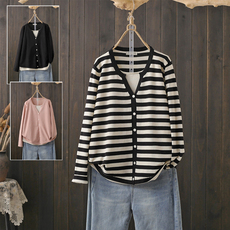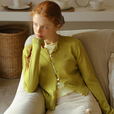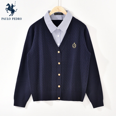pusumede 复古收藏家 V领假两件针织开衫女宽松气质薄款外套上衣