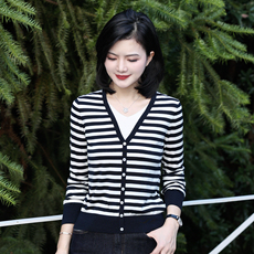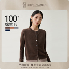 春竹圆领100%绵羊毛假两件式开衫保暖时尚毛针织衫外套上衣女