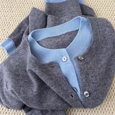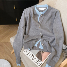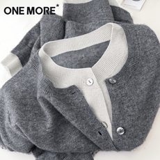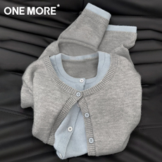 one more假两件针织衫女秋季灰色毛衣开衫巨好看的早秋外套上衣Y