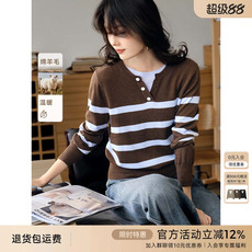 XWI欣未含羊毛假两件拼色针织衫女秋季怀旧美学慵懒松弛套头上衣