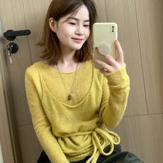 轻奢假两件针织衫女秋冬2025新款时尚洋气显瘦百搭可外穿毛衣外套