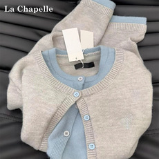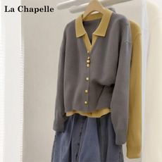 拉夏贝尔早秋假两件撞色polo针织衫毛衣女士小香风灰色外套上衣