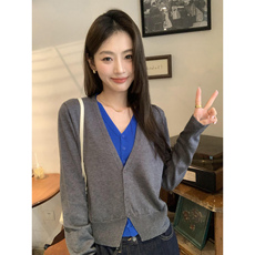 假两件针织开衫外套女士2025新款羊毛v领宽松高级感毛衣外搭上衣