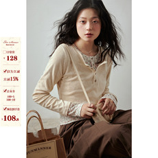 设计感蕾丝拼接假两件针织开衫女短外套毛衣轻奢气质打底毛衫上衣