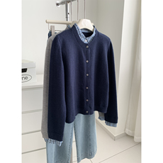pusumede层次感美学 假两件v领针织开衫女100%全羊毛毛衣外套上衣