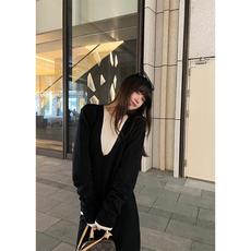 春秋chao轻软韩版假两件针织开衫外套女宽松百搭设计感休闲上衣