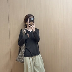 superniniyy 极简慵懒洋气撞色假两件套深v领圆领宽松长袖针织衫