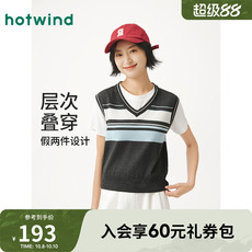 Basic House/百家好假两件印花吊带针织衫秋季新款撞色套头上衣女